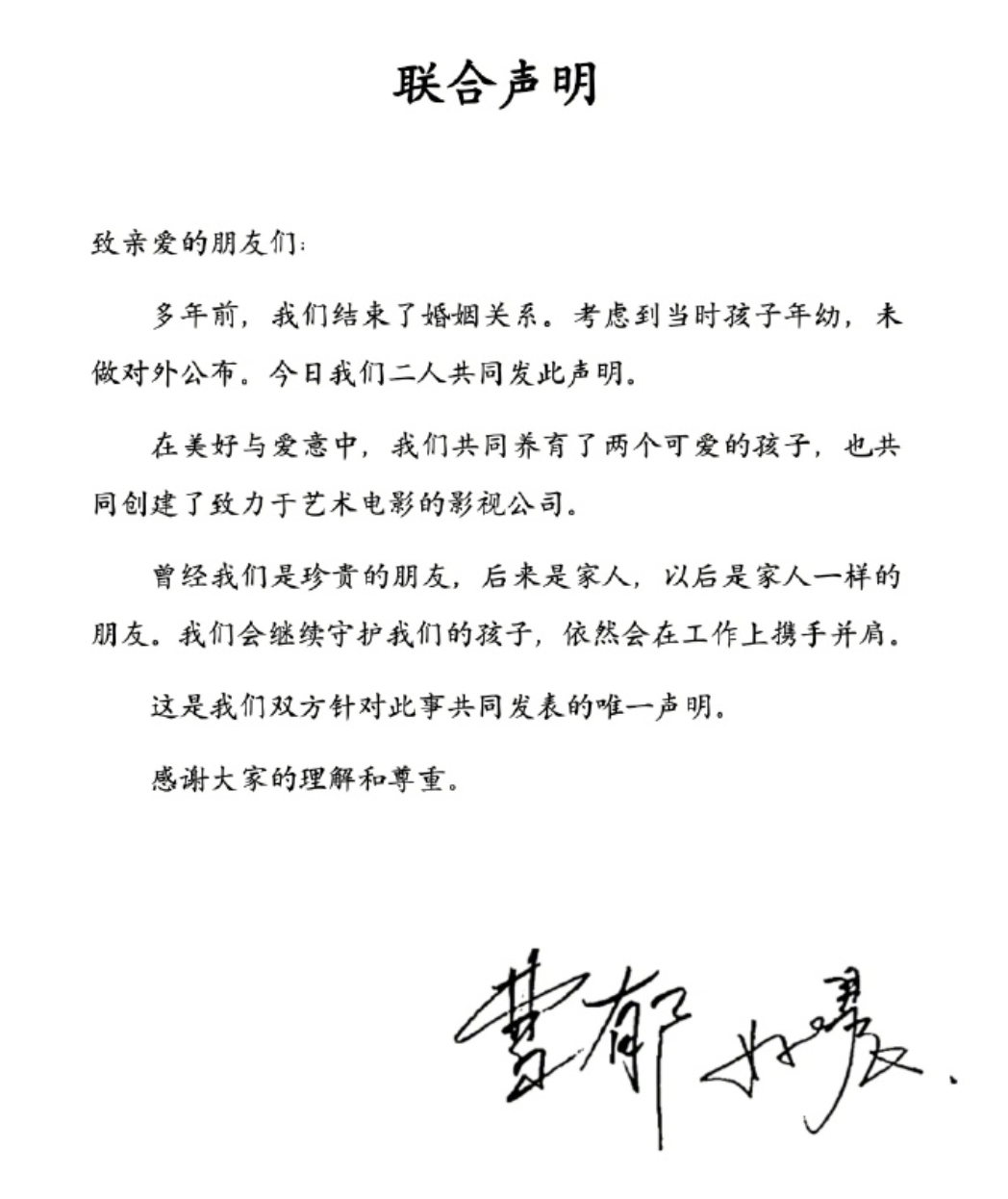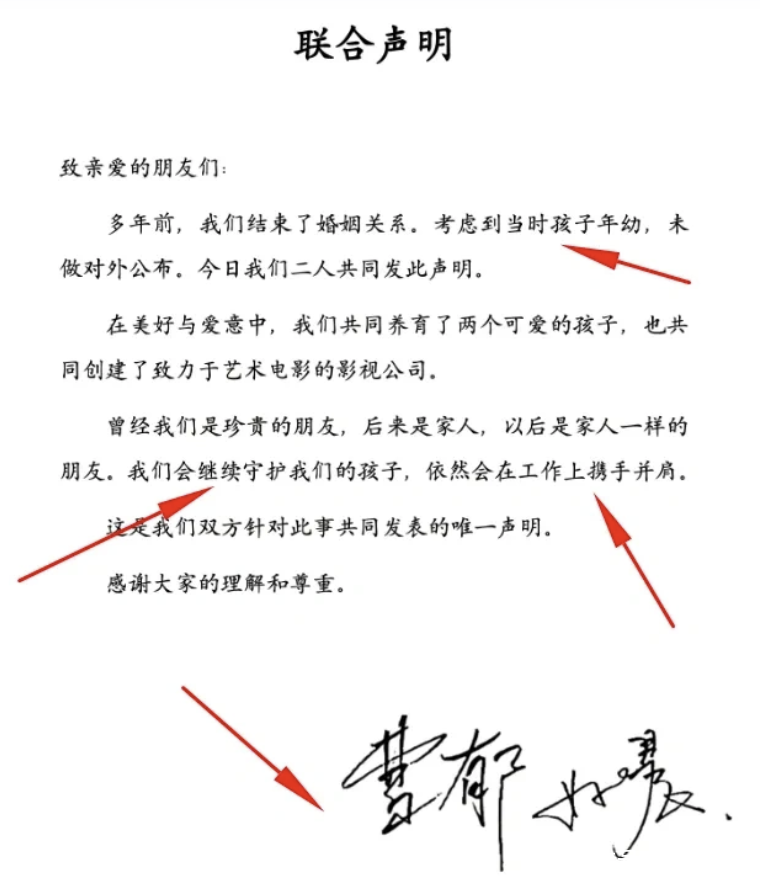 不吵不闹的翻篇过往,甚至为了防止后患,他们还在声明中主动交代了财产分割和抚养权问题。